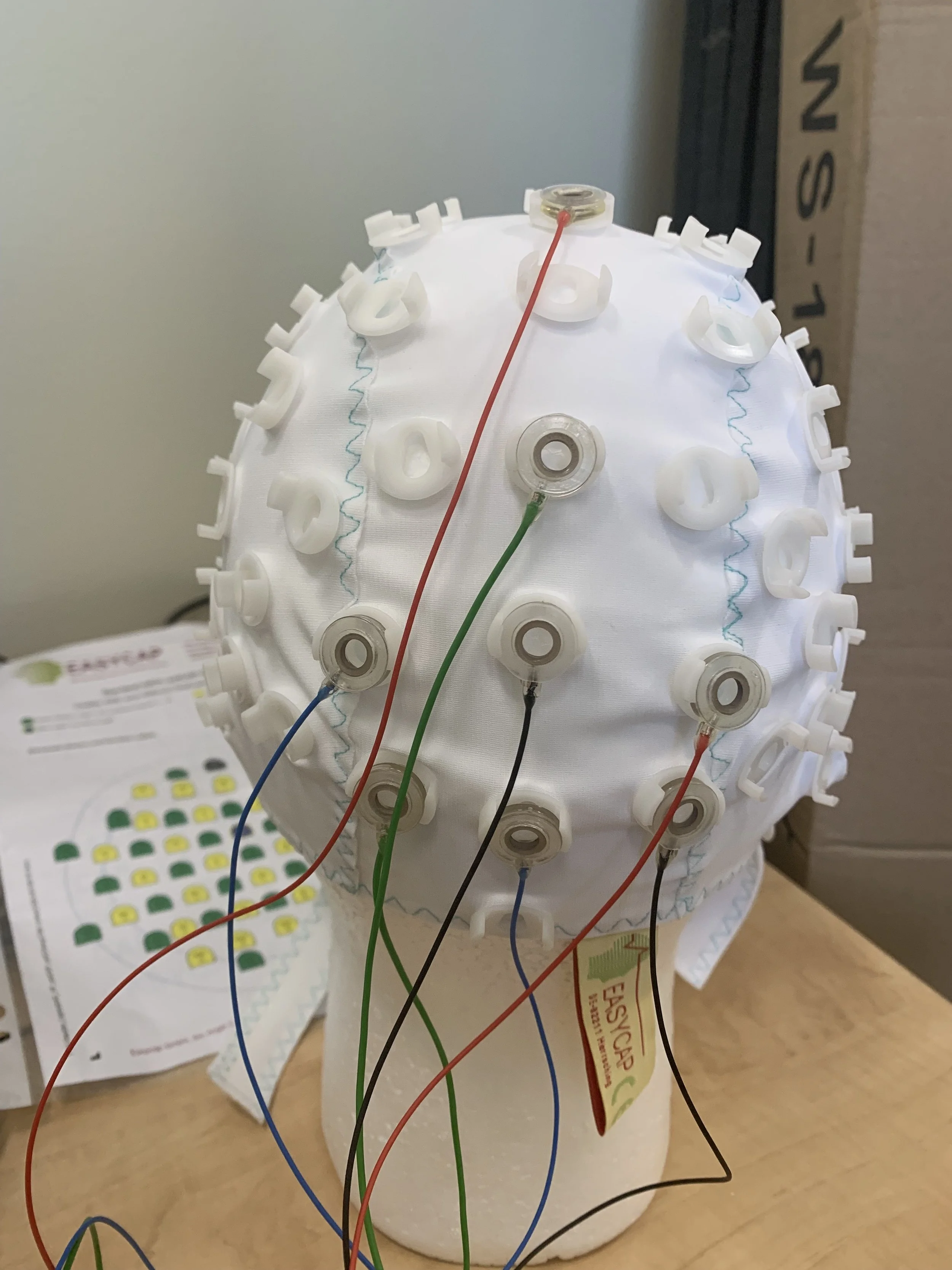 In the lab we use EEG (electroencephalography) to broadly study processes of emotion, attention, as well as cognitive processes of anticipation, uncertainty and mindfulness. We also record heart rate data (EKG) such as heart rate reactivity and variability to examine autonomic responses of cognitive functioning. Eye blink startle responses are also recorded to capture defensive reactivity during threat scenarios. As part of these studies, we are collecting behavioral data on trait mindfulness and intolerance of uncertainty, to further explore these topics.